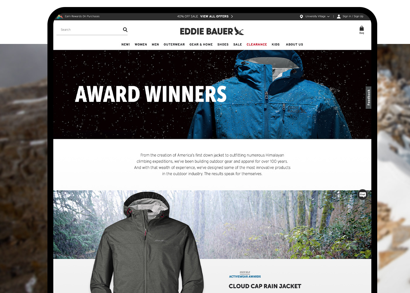 A complete re-design of Eddie Bauer's Awards Landing Page showcasing some of the best designed products Eddie Bauer has to offer.